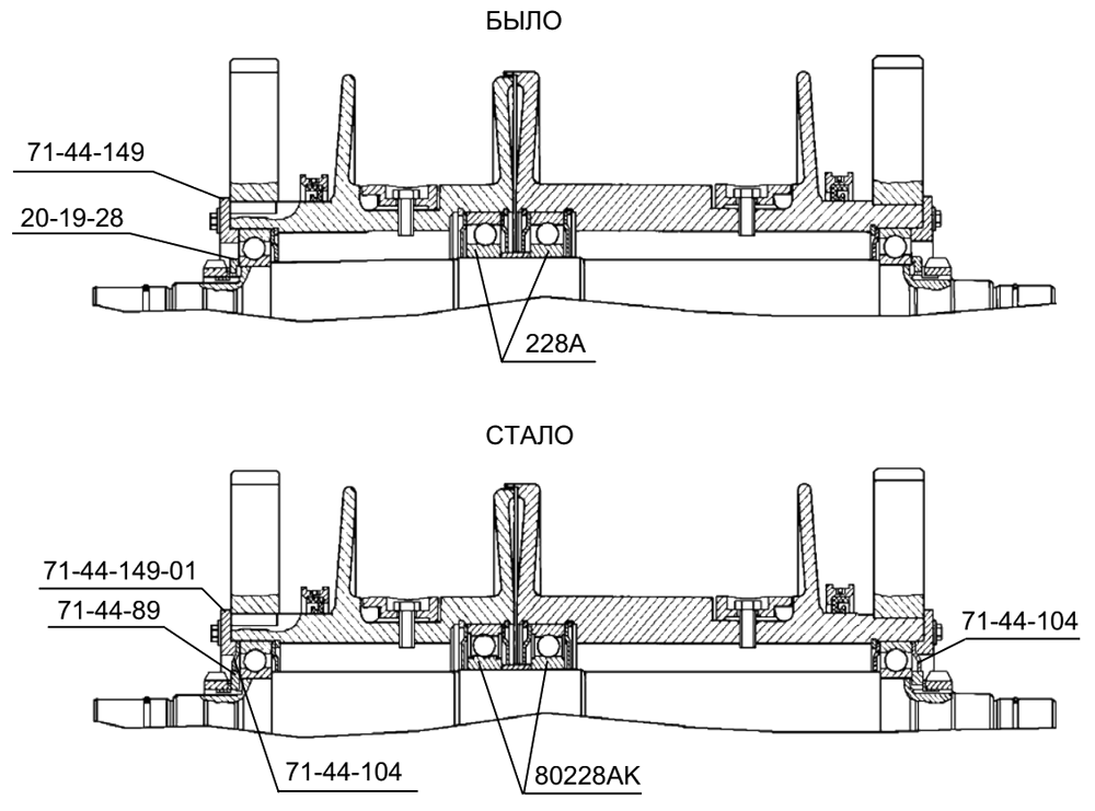 • подшипников 228А на подшипники закрытого типа 80228АК.