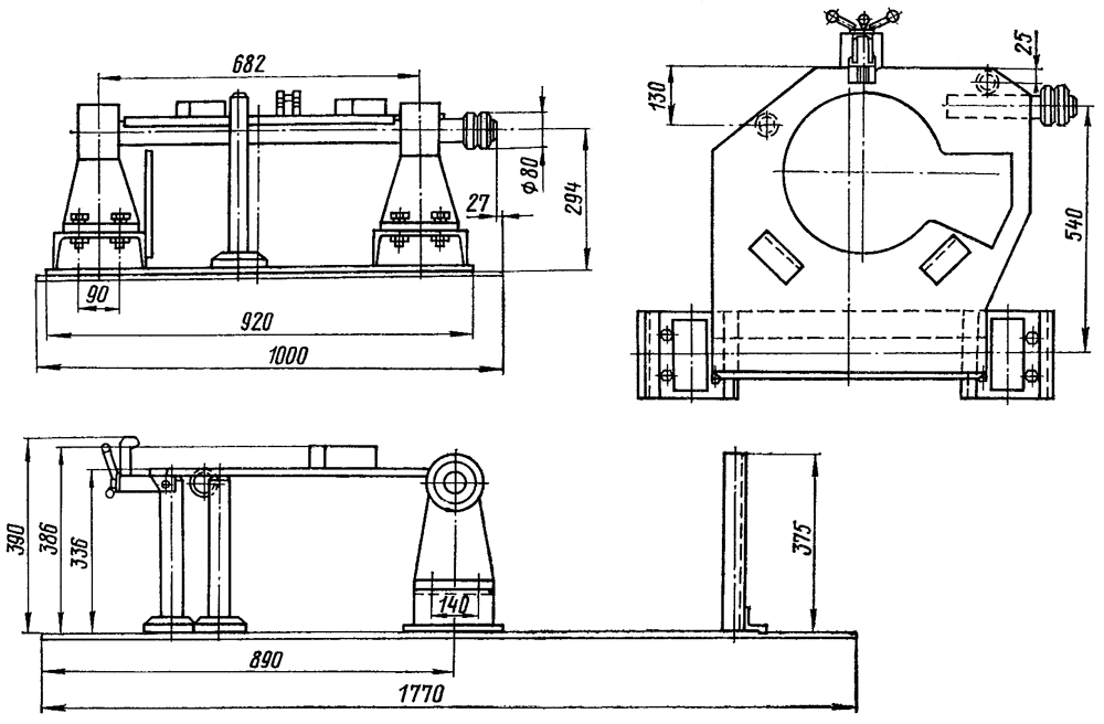 Смажьте прокладку лаком «Герметик» и установите на корпус 4 подшипника. Вверните штуцер подвода смазки в крышку 21 ( см. рис. 203 ). Установите крышку 21 с ввернутым штуцером на прокладку и, перемещая в пределах зазора между болтами и отверстиями, найдите такое положение, когда при вращении нижнего вала штуцер не задевает за нижний вал. В этом положении крышку закрепите болтами. Вверните две шпильки в отверстия передней крышки. Наденьте на шпильки треножки 22 и закрепите гайками.